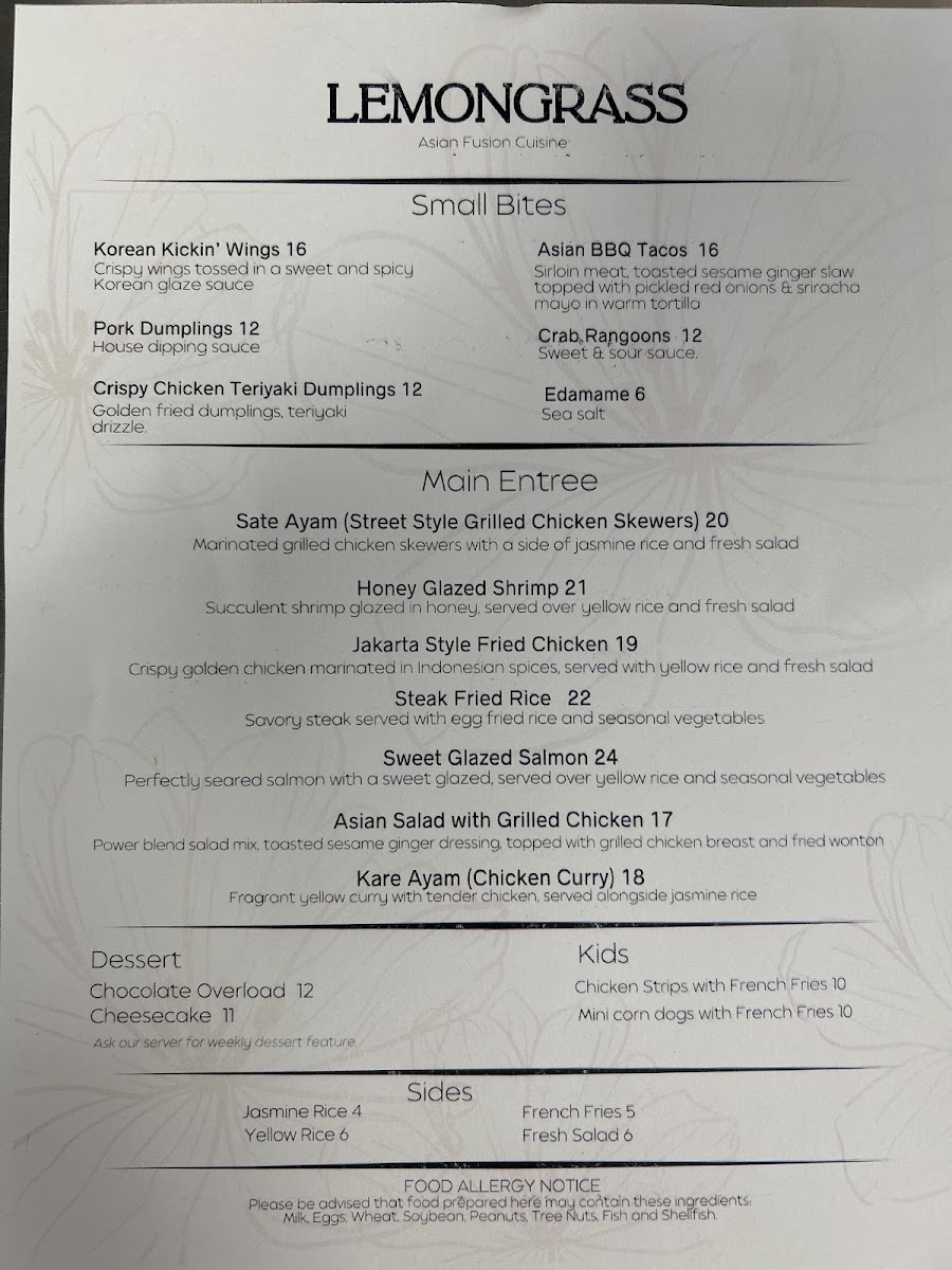 LemonGrass Bar & Kitchen Menu (2025 Update)